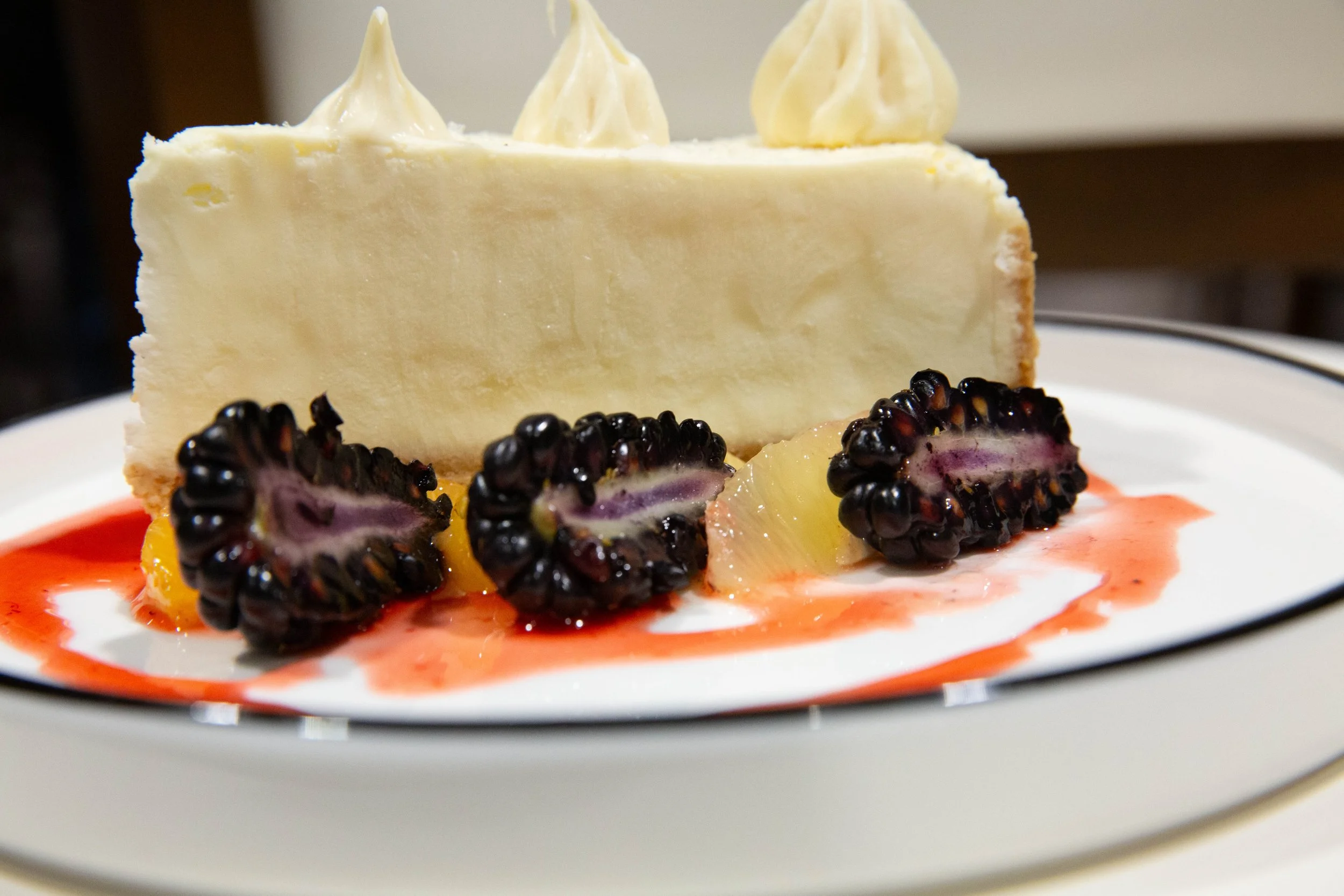 Desserts Citrus Shortcake Cake Soaked Sponge Citrus Cake, White Chocolate Crème Crème Brulee Vanilla-Infused Custard, Caramelized Sugar Bourbon Glaze, and Toasted Pecans, Powder Sugar Maple Bourbon Bread Pudding Brioche Layers Soaked in Maple Custard, Bourbon Glaze, and Toasted Pecans, Powder Sugar Chocolate S’mores Cheesecake Marshmallow Crème, Macerated Raspberries Salted Caramel Pretzel Brownie Cake Salted Caramel Crème, Berries, Powder Sugar Citrus Berries Stack (V) Citrus Bursting Tropical Boba, Berries, Rice Bao Croutons